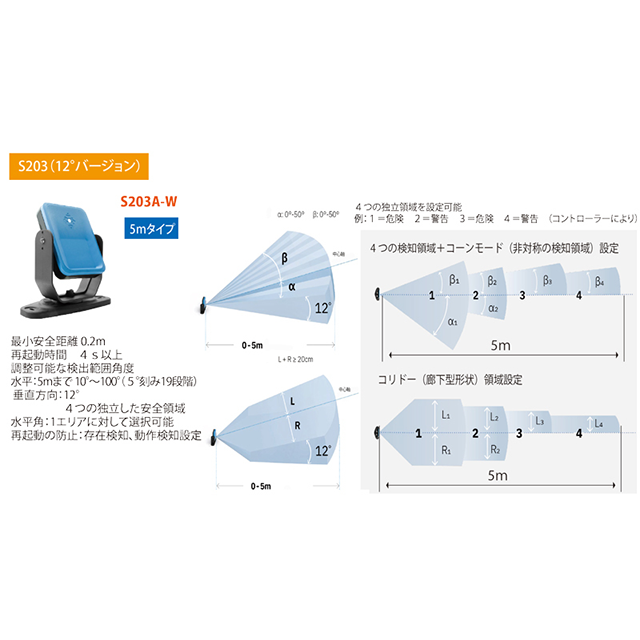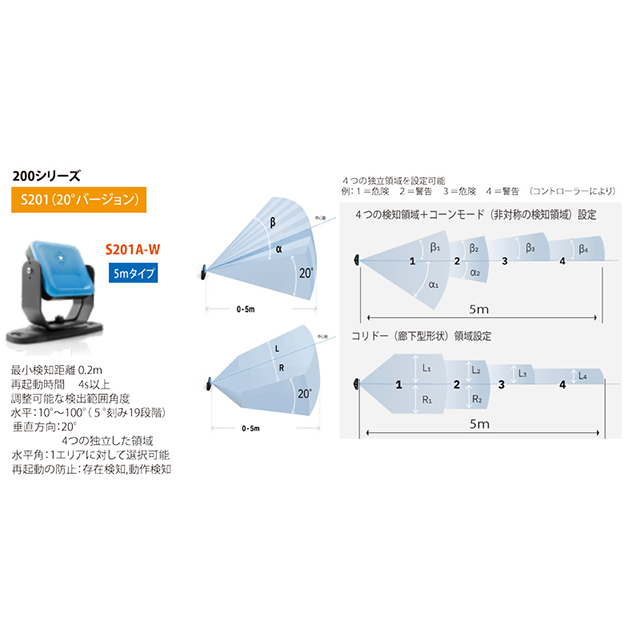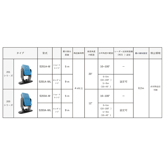 垂直角度の範囲 | 20°(201シリーズ) 12°(203シリーズ) |